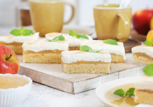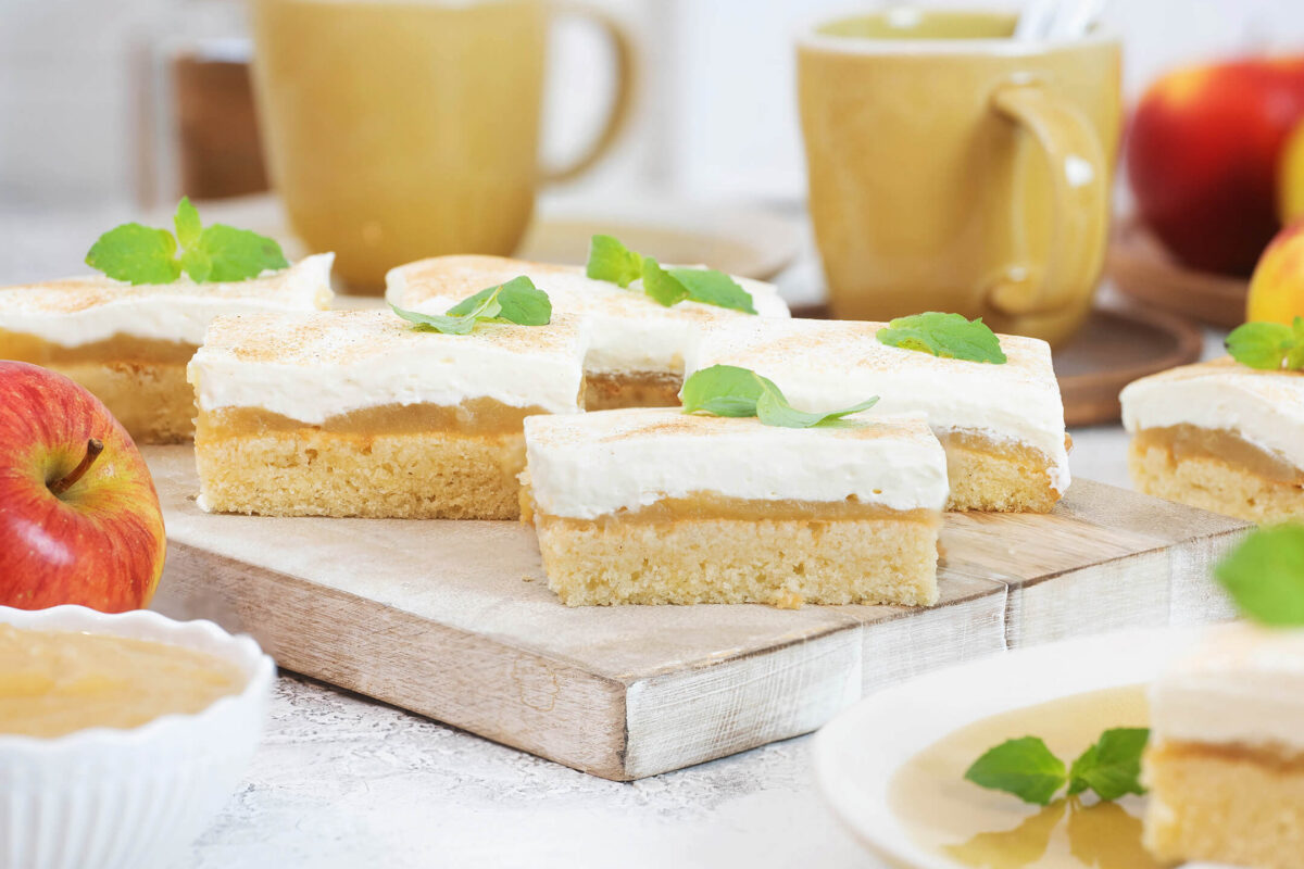 Ein Apfelmuskuchen mit Schmand vom Blech ist ein echter Genuss! Auf einem fluffigen Rührteigboden trifft fruchtiges Apfelmus auf eine cremige Schmand-Schicht – die perfekte Kombination aus frischer Süße und zarter Creme.