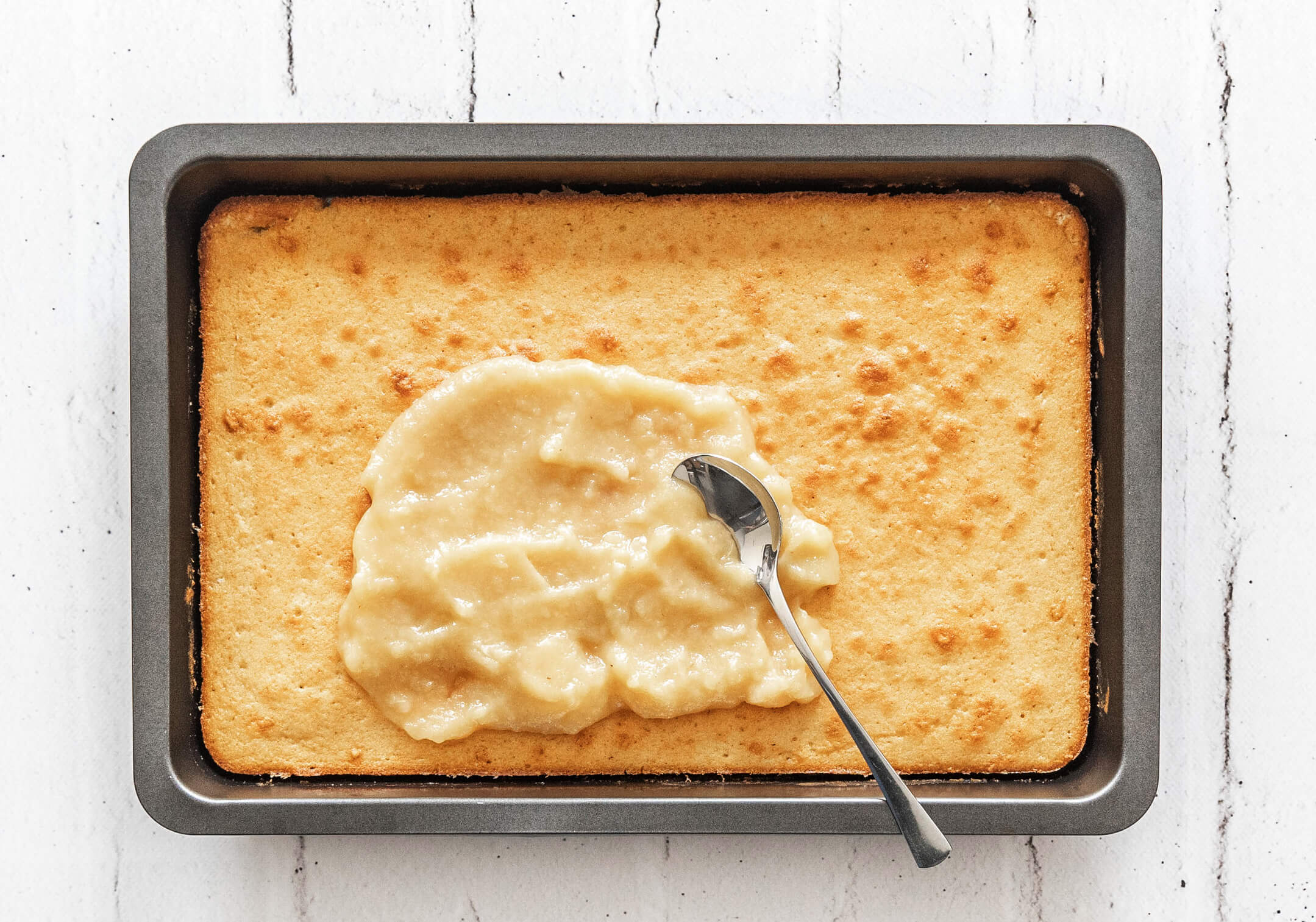 Apfelmuskuchen mit Schmand vom Blech