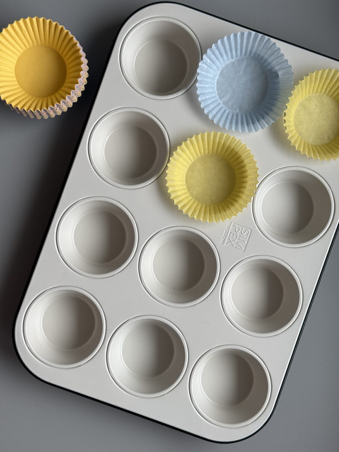 Wir starten damit, dass wir das Muffinblech mit den Papierformen auslegen und der Backofen auf 160 C Umluft vorheizen