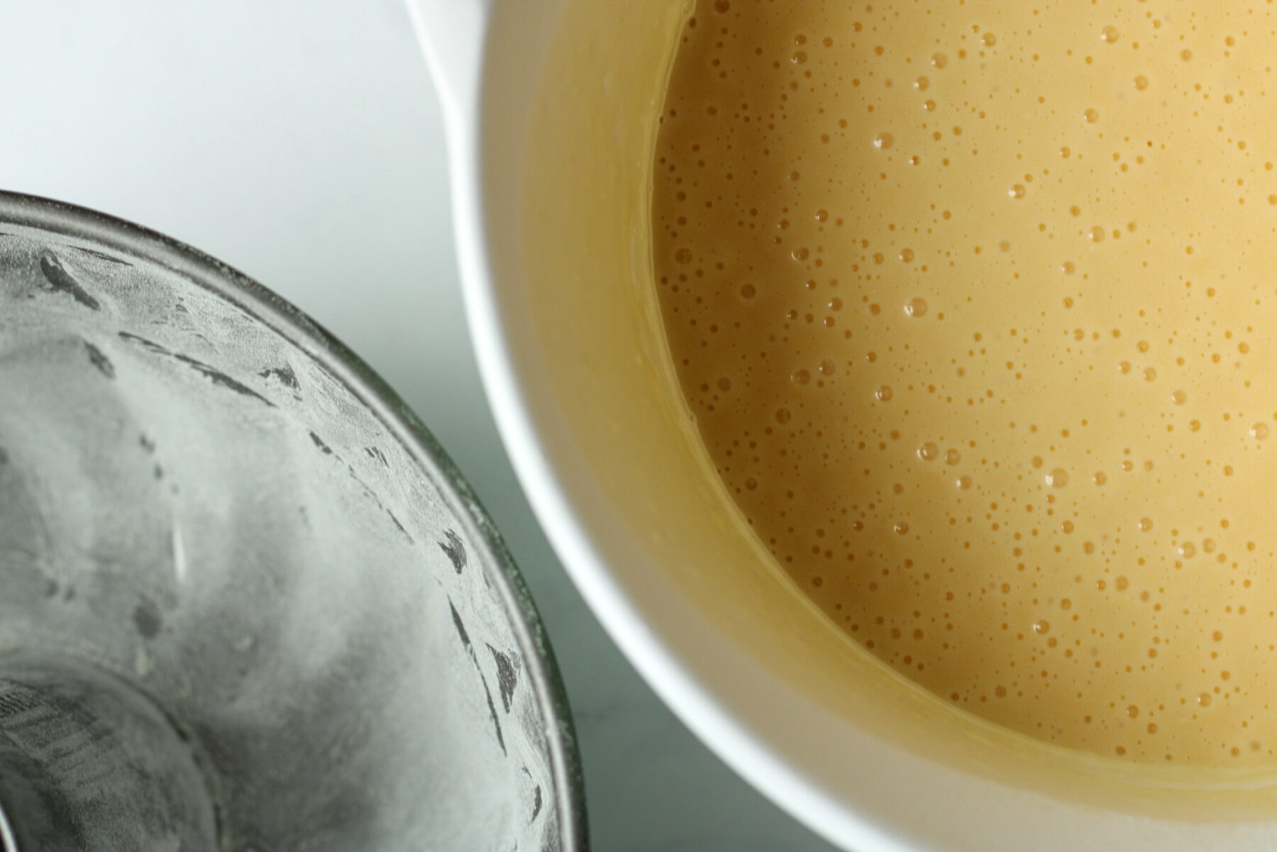 Fülle den flüssigen Teig ein und hab keine Sorge, der Eierlikör Gugelhupf Kuchen wird fest werden.