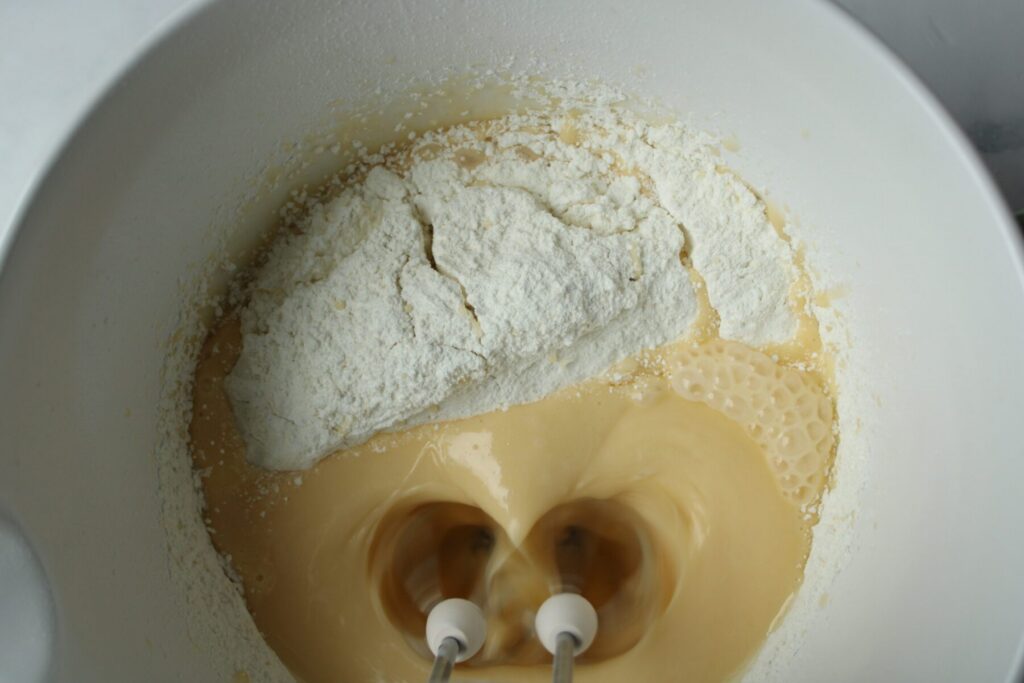 Sobald dies geschehen ist gibst Du die trockenen Zutaten nach und nach in Deine Rührschüssel und verrührst diese mit Deiner Eierlikör-Öl-Eier Mischung.