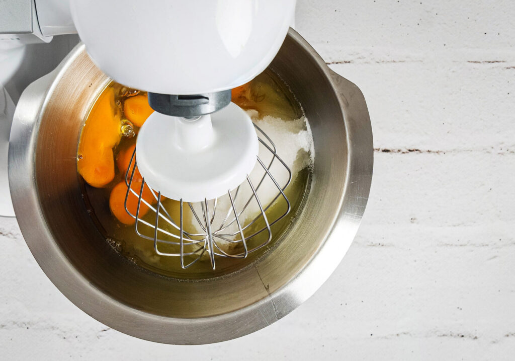 Tipp für die Kaltaufschlag-Methode: Stelle sicher, dass die Eier tatsächlich Zimmertemperatur haben, damit sie beim Aufschlagen besser Volumen entwickeln. Kalte Eier würden länger brauchen und nicht so luftig werden.