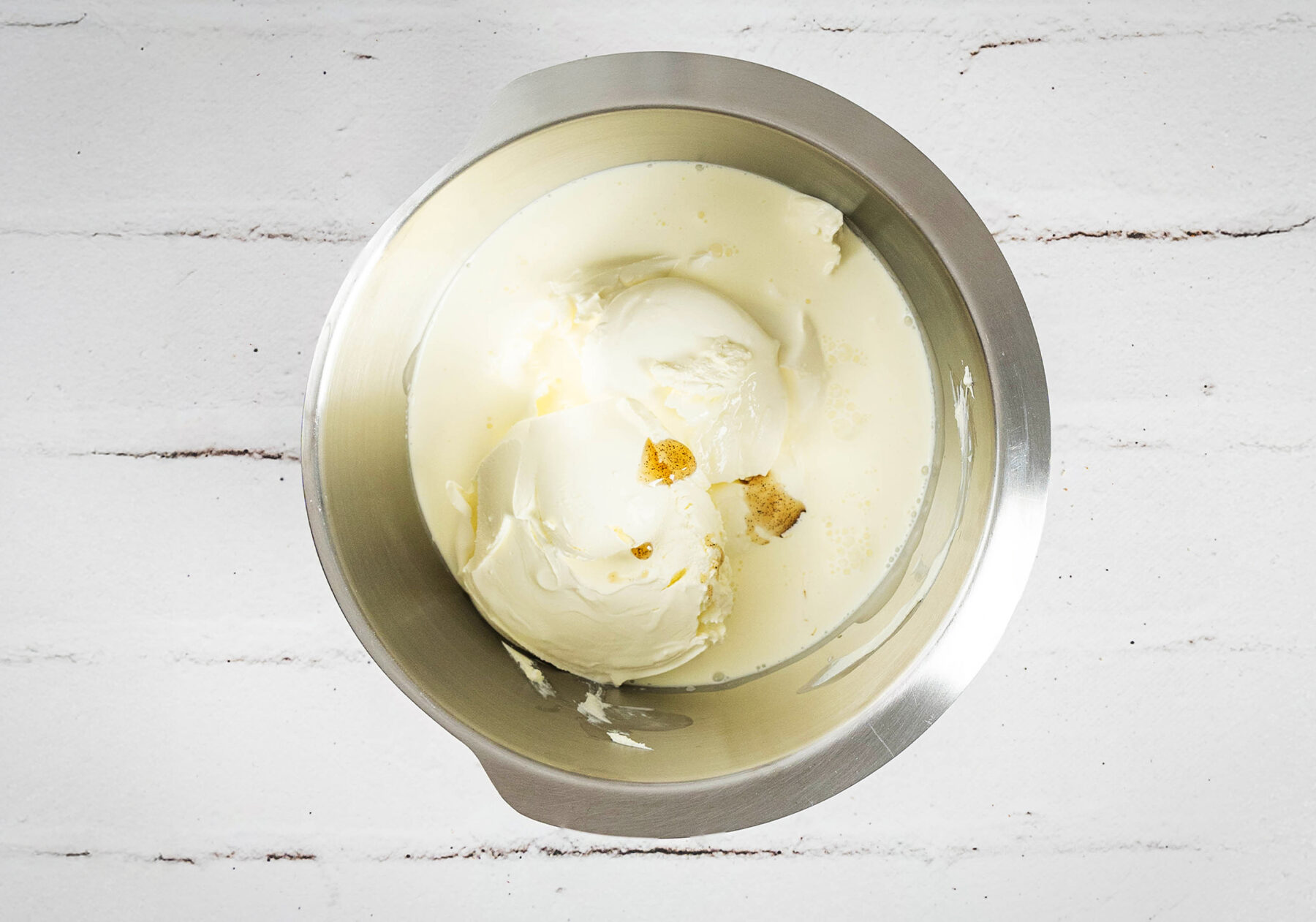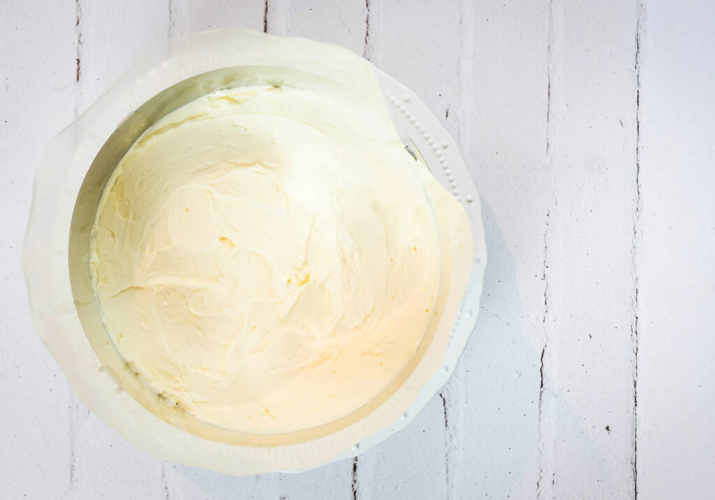 Um die einfache Zitronentorte einzustreichen, wird die bereits vorbereitete Mascarpone-Zitronen-Creme eventuell noch einmal kurz durchgerührt, um sie wieder etwas geschmeidiger zu machen. Das ist besonders wichtig, wenn die Creme durch das Kühlen etwas fester geworden ist. Achte dabei darauf, die Creme nicht zu lange zu rühren, da sie sonst ihre Stabilität verlieren könnte. Sie sollte eine glatte und streichfähige Konsistenz haben.