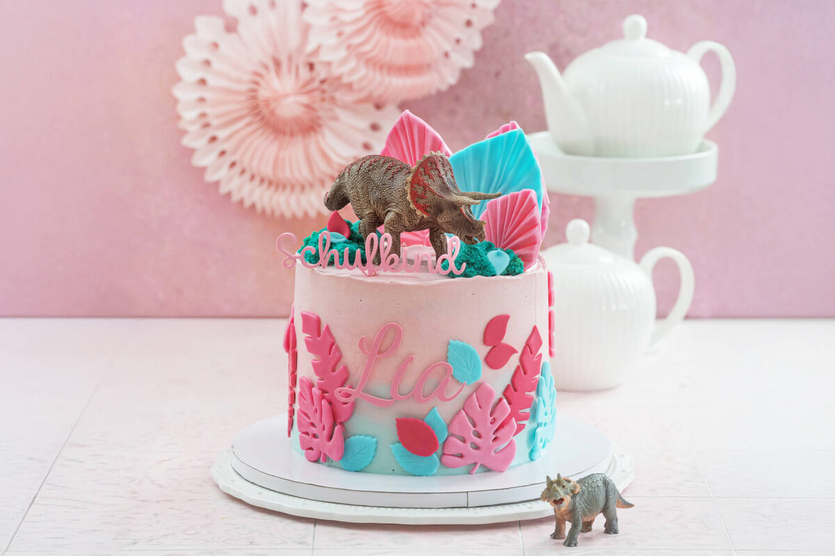 Einschulungstorte für Mädchen Dino-Torte
