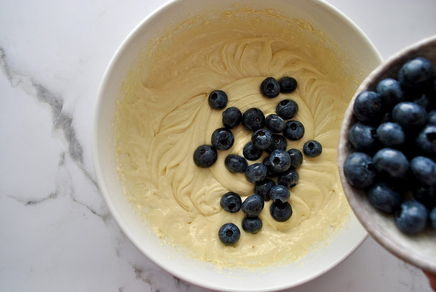 Zum Schluss die Heidelbeeren zum Teig geben und vorsichtig unterheben.