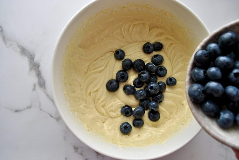 Zum Schluss geben wir die Heidelbeeren zum Teig und heben sie kurz vorsichtig unter.