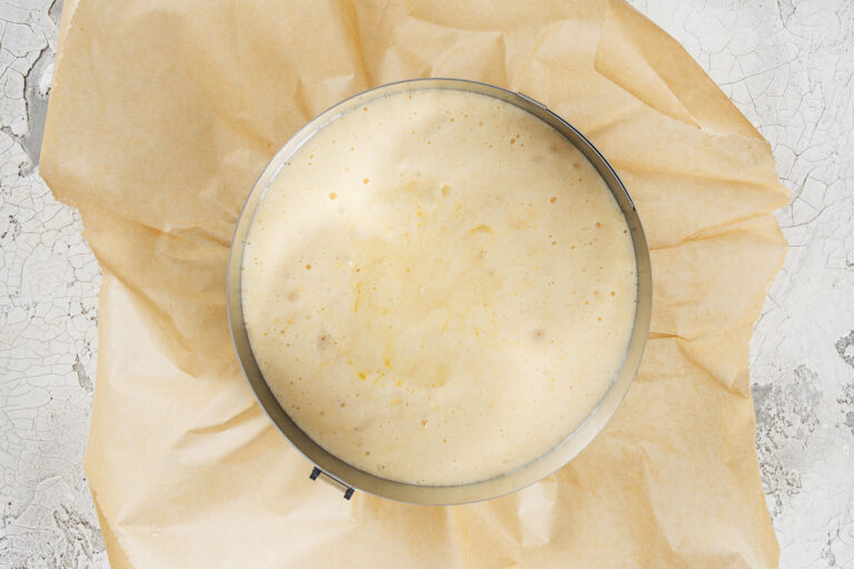 Deshalb solltest du dir vor dem Start alle Zutaten griffbereit hinstellen und genau abwiegen. Auch der Backofen sollte schon vorgeheizt sein – auf 175 °C Ober- und Unterhitze. Nimm dir einen Moment Zeit, um deine Springform vorzubereiten: Lege den Boden mit Backpapier aus, aber fette die Form auf keinen Fall ein – das ist wichtig, damit der Teig gut „hochklettern“ kann.
