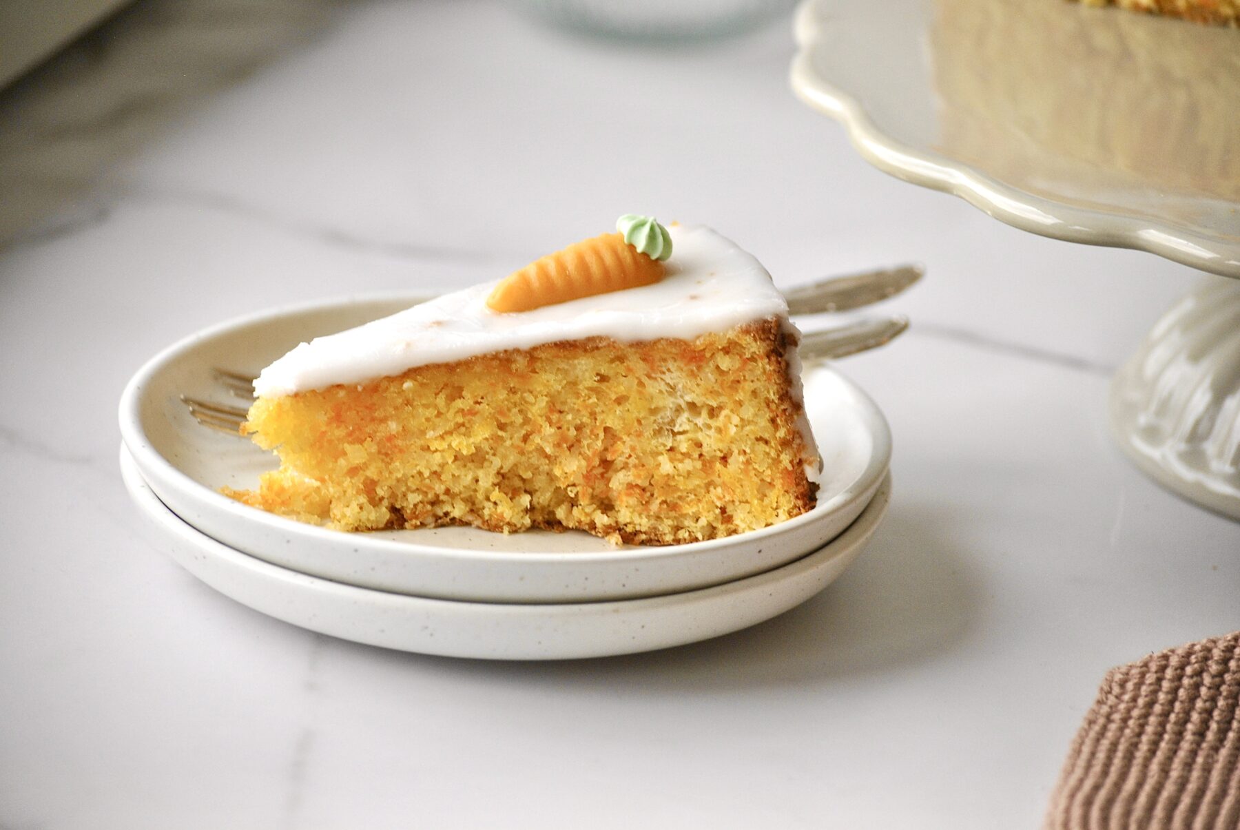 Er schmeckt richtig saftig, luftig und leicht. Der Zitronenzuckerguss und die Marzipanrübli verpassen ihm ein besonders hübsches Aussehen. Weiter unten verrate ich dir alle meine Tipps zum Rezept, damit dir das Backergebnis einwandfrei gelingt.
