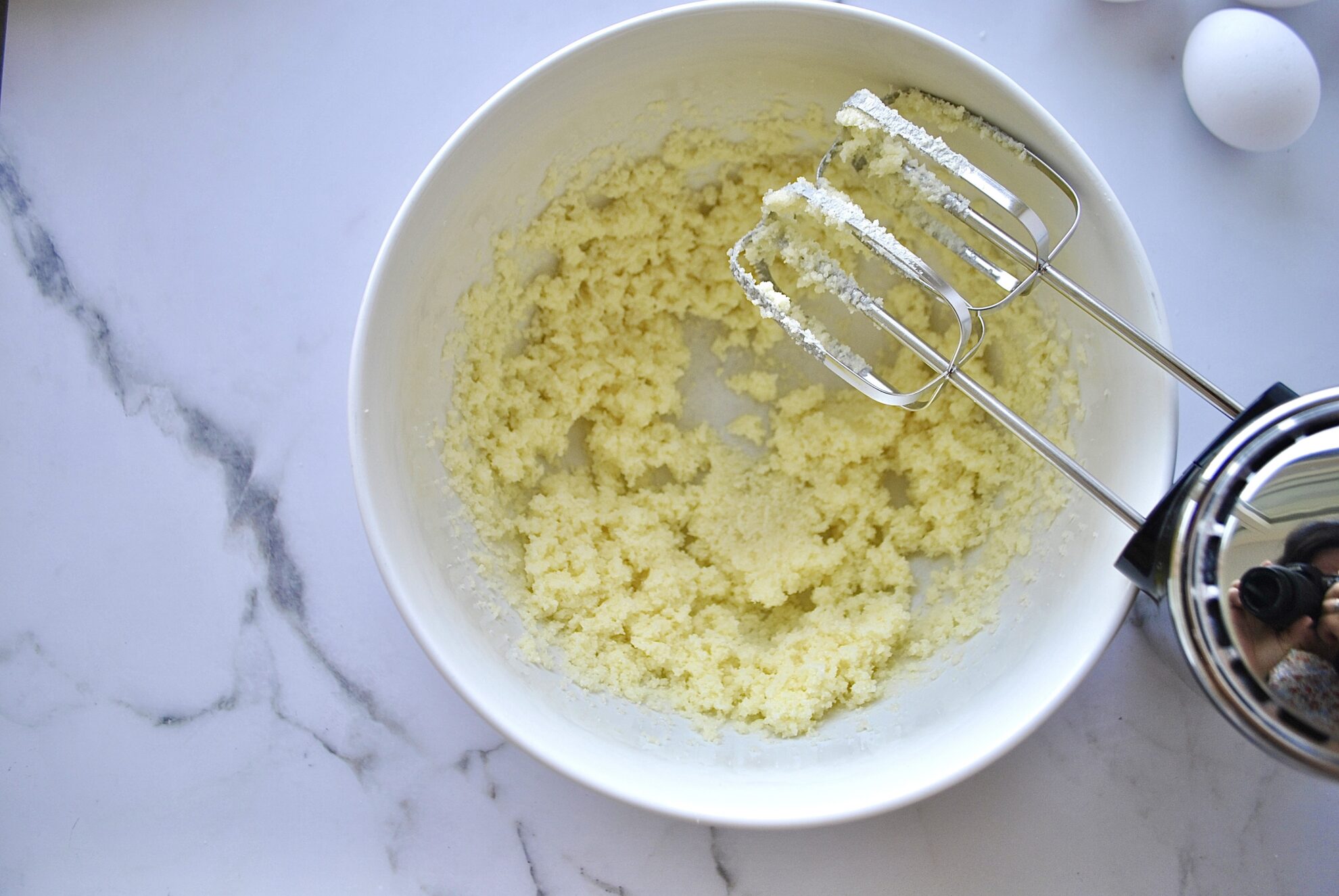 Danach schlägst du die Eier einzeln unter den Teig, sodass er schön cremig und luftig wird.