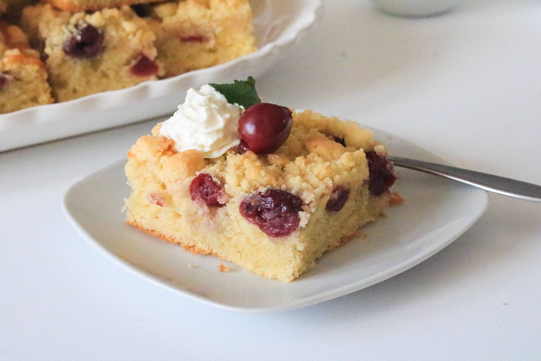 - Der saftige Kirschkuchen mit Streusel vom Blech ist ein Obstkuchen Traum.