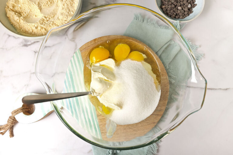 Mandelmehl, Kokosmehl, Flohsamenschalenpulver und Backpulver vermengen.