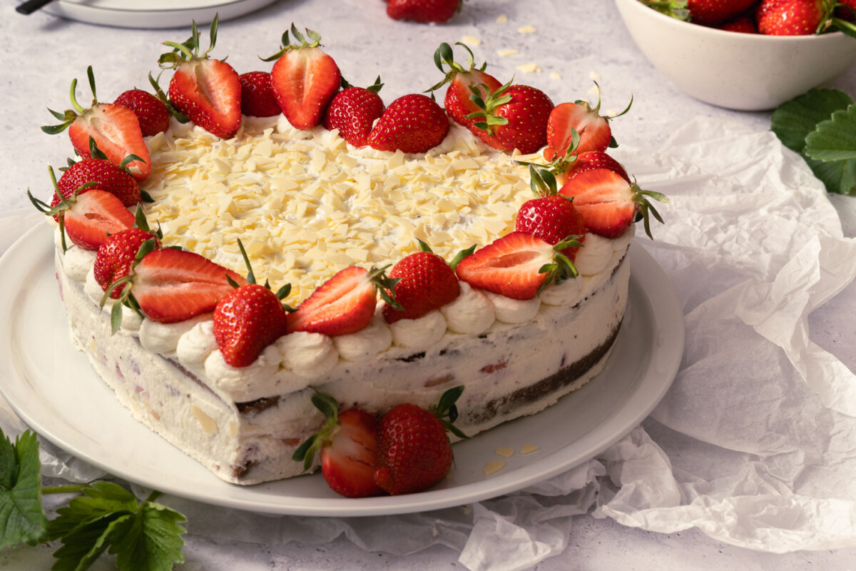 Muttertagskuchen Herz - Herztorte mit Erdbeeren