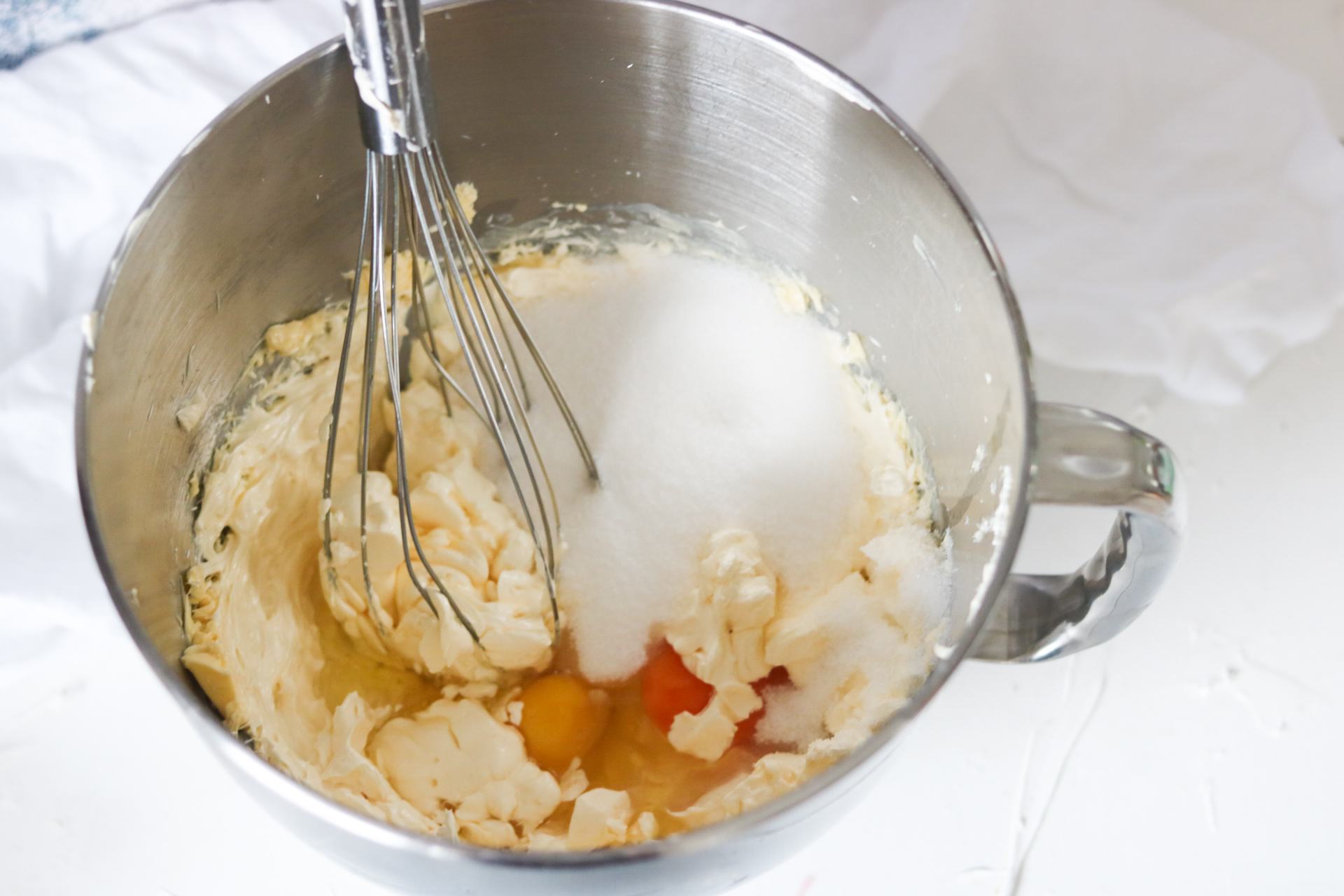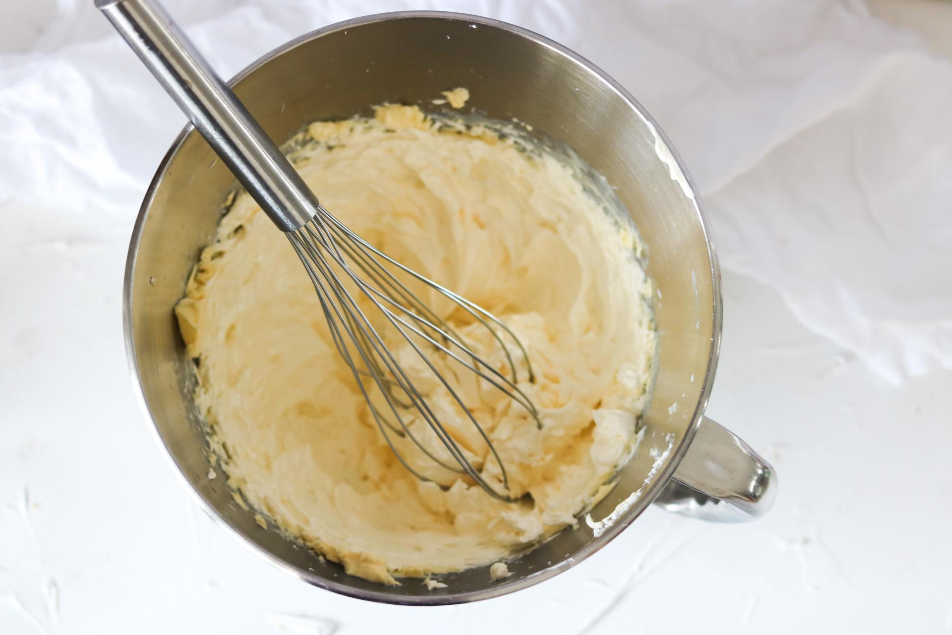 Als erstes wird die Margarine kräftig aufgeschlagen, so dass die Masse schön weich und leicht weiß wird.