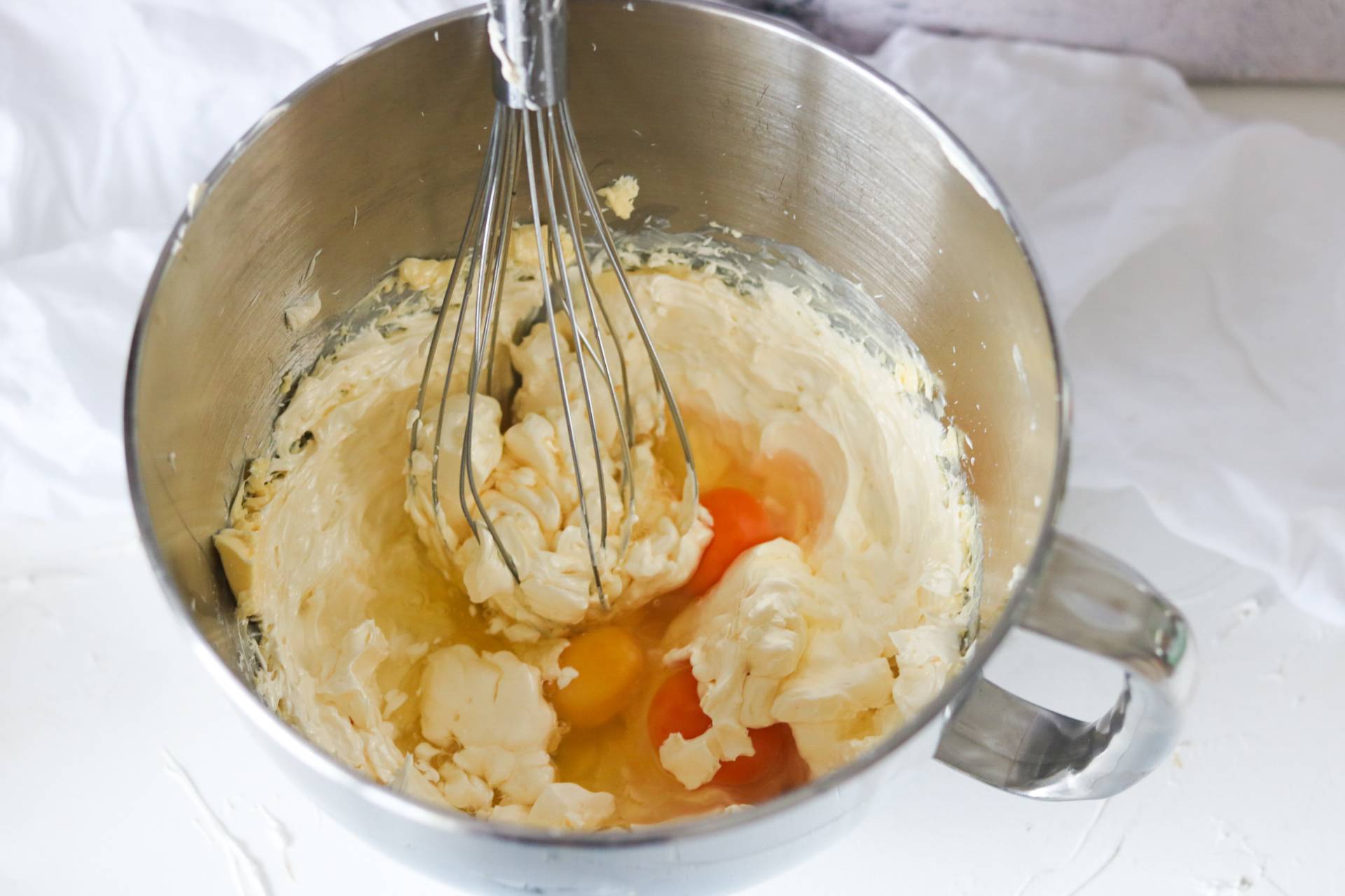 Dann kommen nach und nach die Eier darunter und zusammen mit dem Zucker und Vanillezucker entsteht durch kräftiges Weiterrühren eine schöne Schaummasse.
