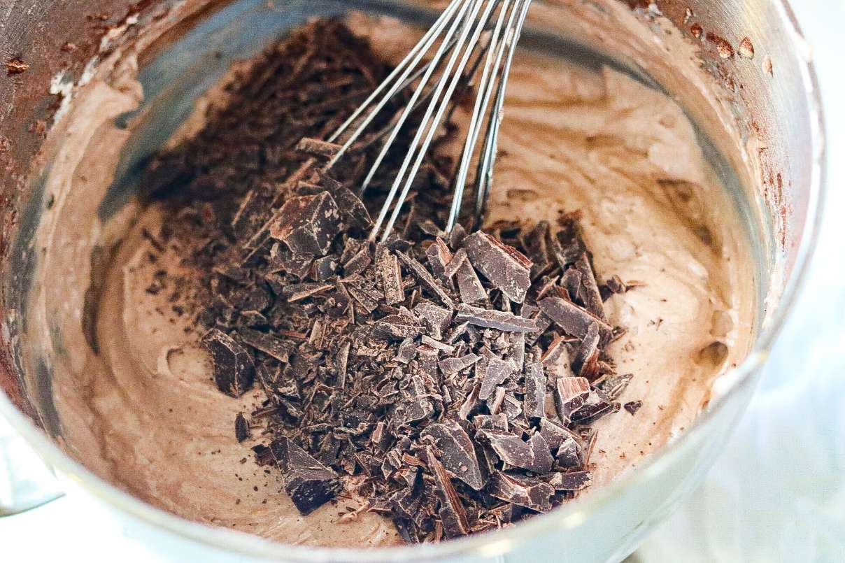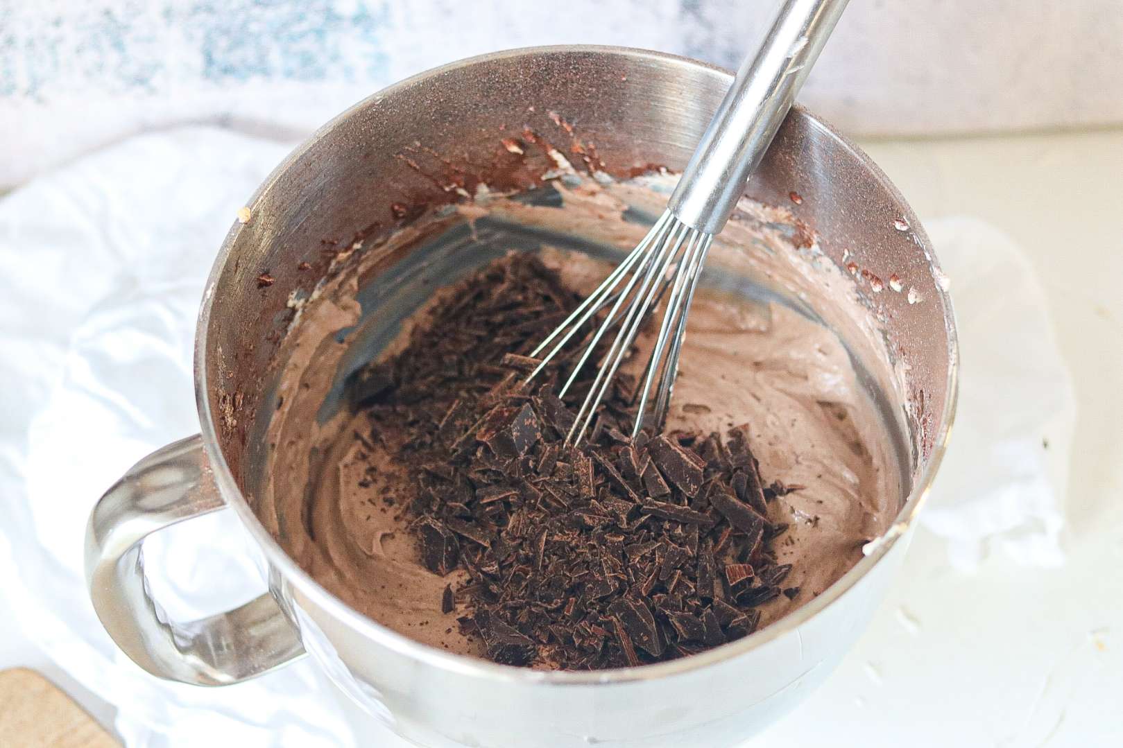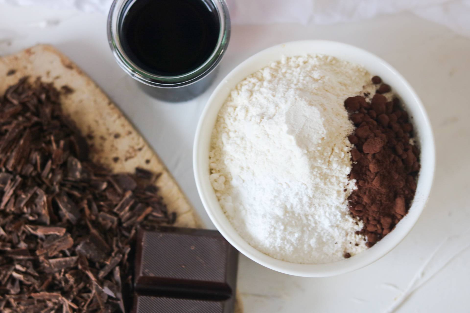 Während die Küchenmaschine weiter rührt, kannst du das Mehl und das Backpulver zusammen mit Kakao und Zimt in einer Schüssel miteinander vermischen. Das Mehlgemisch kommt dann im Wechsel mit dem Rotwein zum Rührteig.