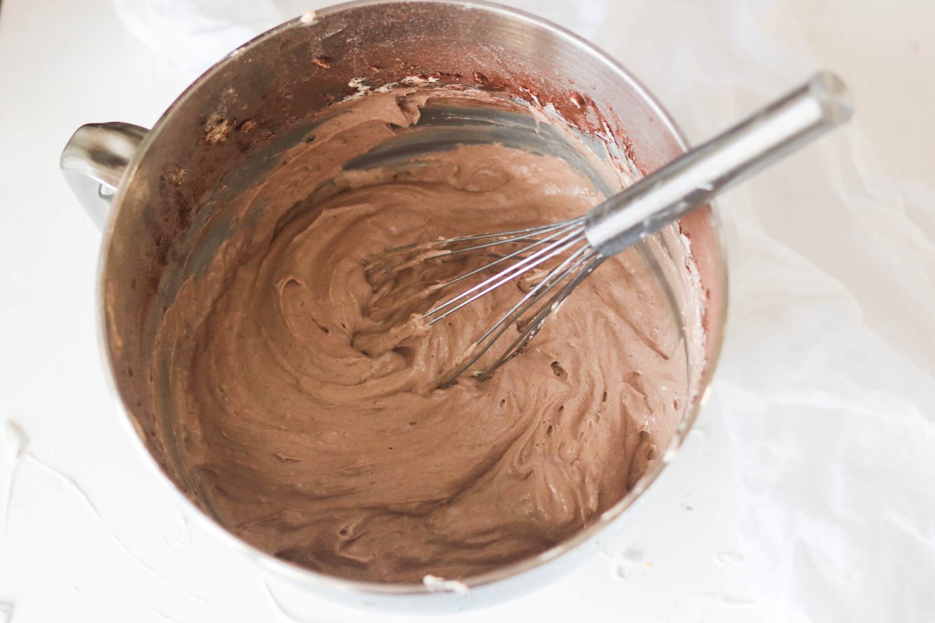 Hier gilt wieder – kurz und kräftig verrühren, dass sich ein gleichmäßiger Teig bildet. Aber nicht zulange rühren – ich rühre maximal 30 Sekunden eher weniger – sonst bildet sich der Eiweißkleber aus und dein Kuchen bleibt sitzen!