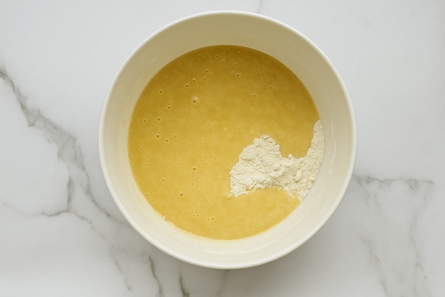 Danach vermengen wir in einer separaten Schüssel die Eier und das Raps- oder Sonnenblumenöl.