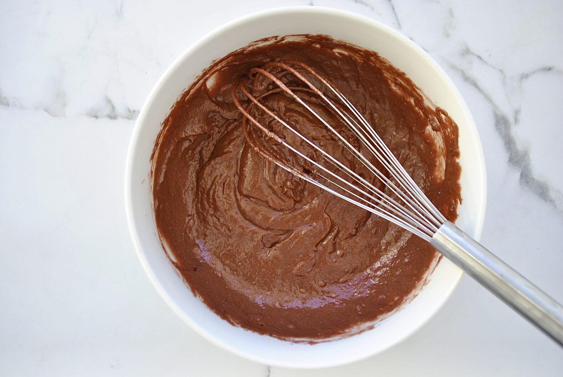 Das Rezept ist wirklich super einfach. Zuerst mischen wir in einer größren Rührschüssel alle trocken Zutaten wie Mehl, Backpulver, Zucker, Vanillezucker, Kakaopulver und Salz.
