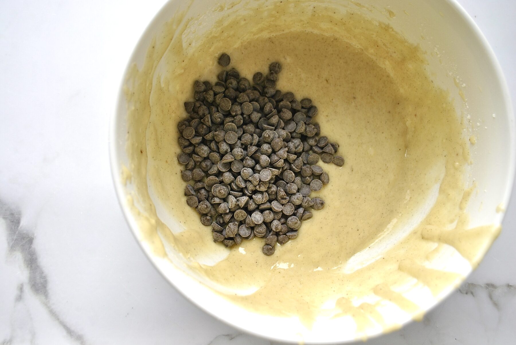 Zum Schluss die Schokostückchen zum Teig geben und vorsichtig unterheben.