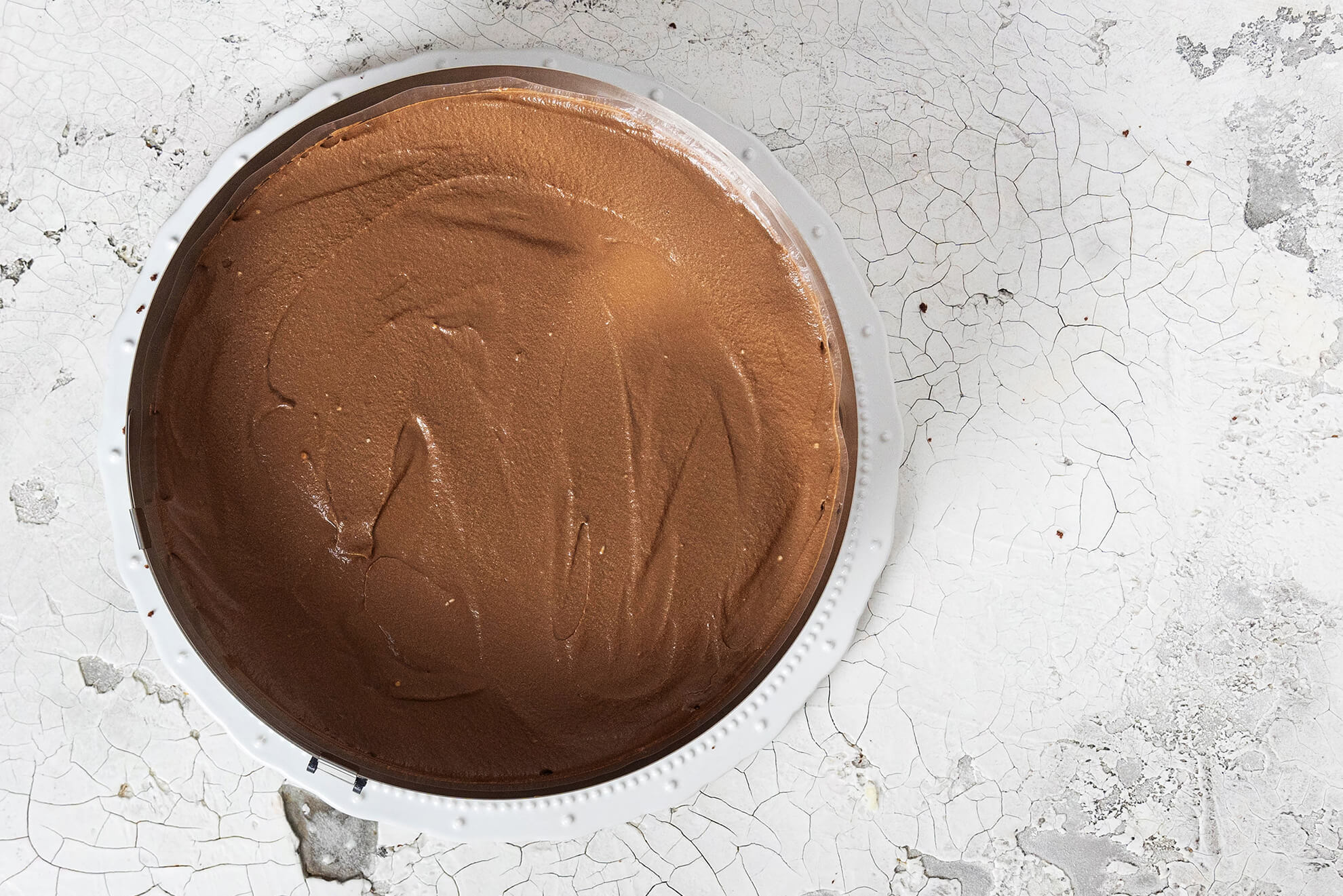 Verstreiche die Creme gleichmäßig auf dem Tortenboden und stelle die Torte anschließend für mindestens 3 Stunden in den Kühlschrank.