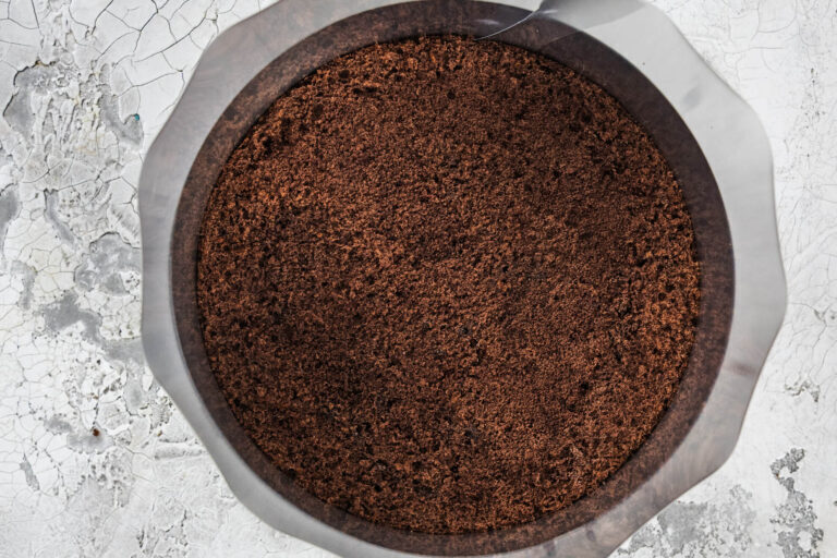Sobald der Biskuit fertig gebacken ist, holst du ihn aus dem Ofen und löst ihn noch heiß vorsichtig aus der Form. Stürze ihn anschließend kopfüber auf ein Stück Backpapier und lasse ihn vollständig auskühlen. Durch das Umdrehen verteilt sich die Restfeuchtigkeit besser, und die Oberseite wird automatisch ebenmäßiger – ideal, falls der Boden in der Mitte leicht aufgegangen ist. So erhältst du eine glatte Fläche, die sich später perfekt weiterverarbeiten lässt.