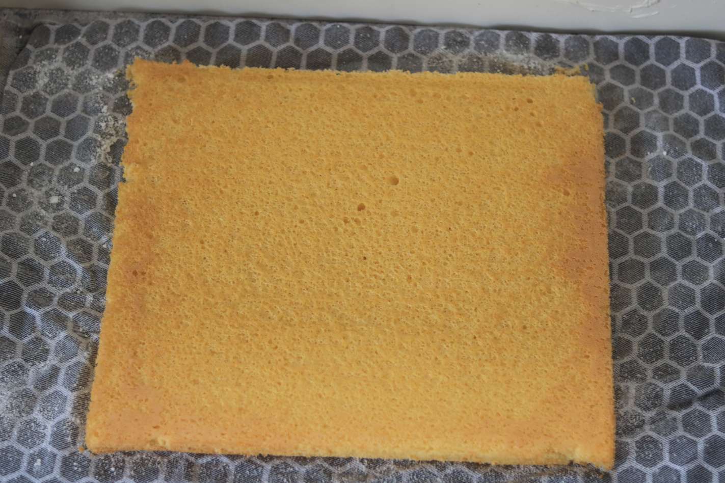 Bei 180 °C Grad Ober-/Unterhitze etwa 12–15 Minuten den Biskuitboden für Spekulatiusschnitten goldgelb backen und auskühlen lassen.