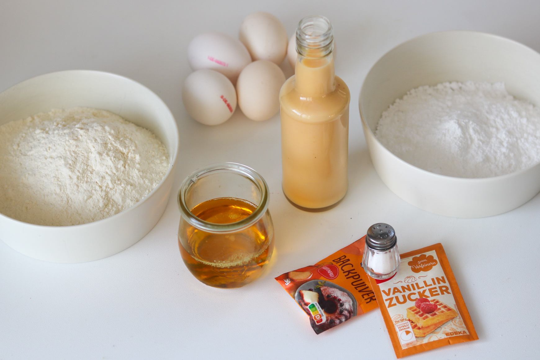 Als erstes starten wir damit, dass wir uns die Zutaten bereitlegen und abwiegen. So geht es gleich beim Backen schneller.