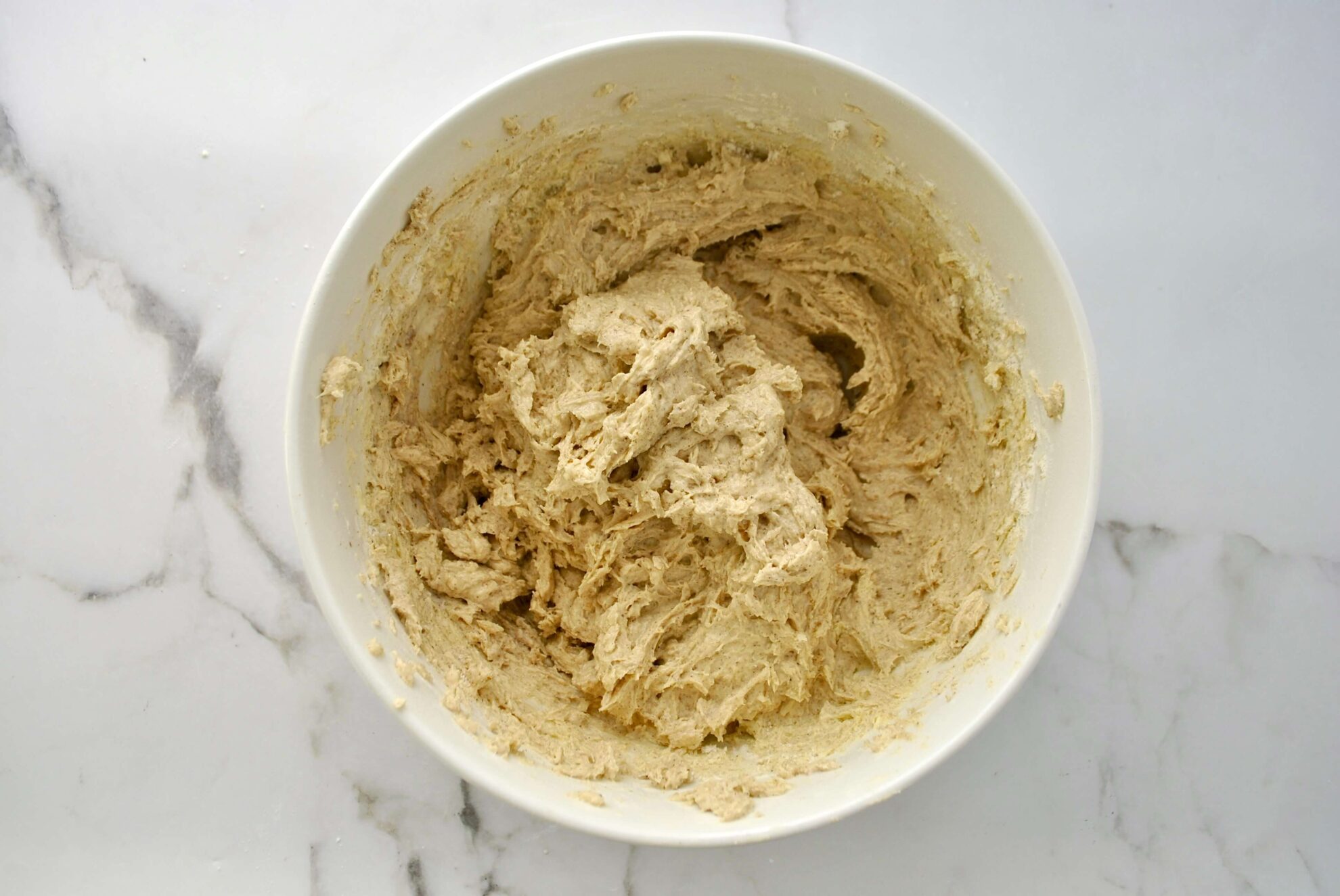 Zum Schluss kommt das Mehl, Backpulver, Salz, das Zimtpulver und die Milch zum Teig hinzu. Nur noch solange vermengen bis ein homogener Teig entsteht. Der Rührteig sollte nicht zu kräftig aufgeschlagen werden, damit der Kuchen nicht speckig wird.