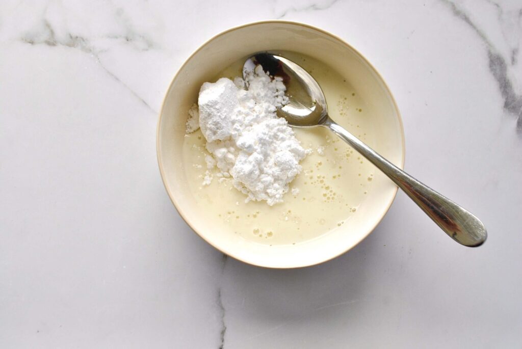 Unterdessen rühren wir uns die Puderzuckerglasur an. Dafür vermengst du den Puderzucker zusammen mit der Milch zu einer eher dickflüssigen Glasur.