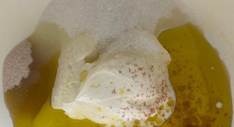 Als Erstes verrührst Du Quark, Öl, Milch, Zucker, Vanillezucker, Salz und Zitronenschale in einer großen Schüssel.